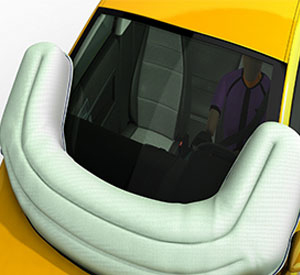 車両が歩行者に衝突する際に歩行者頭部と車両との間に展開するエアバッグで、直接接触回避することで歩行者の頭部傷害低減を可能にします。
